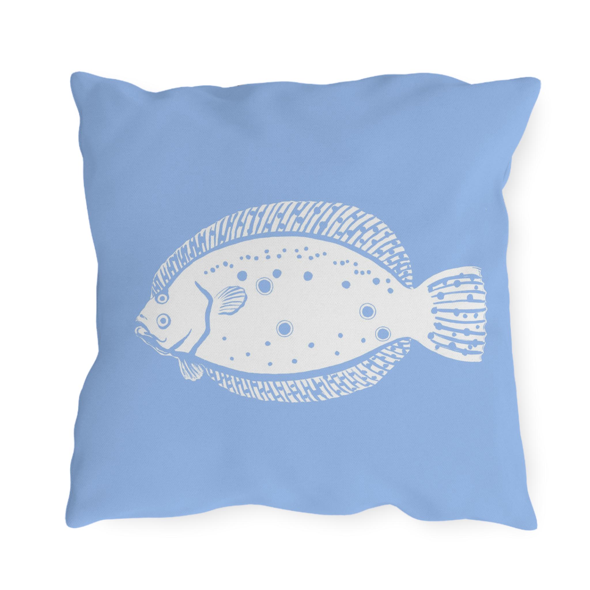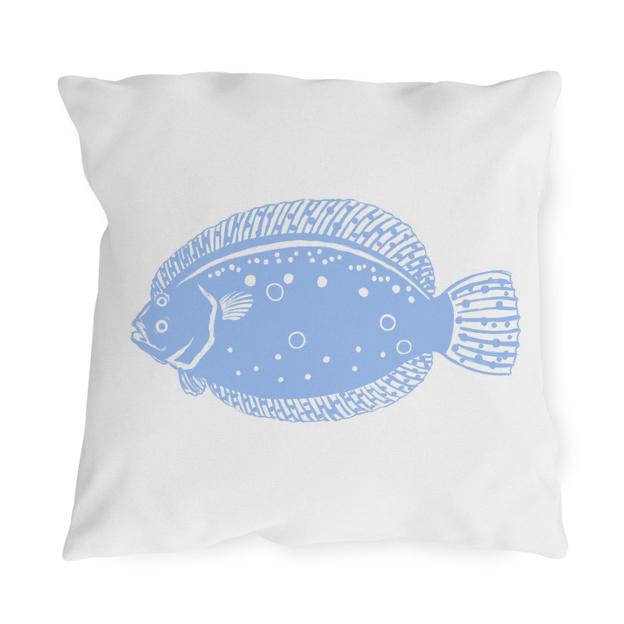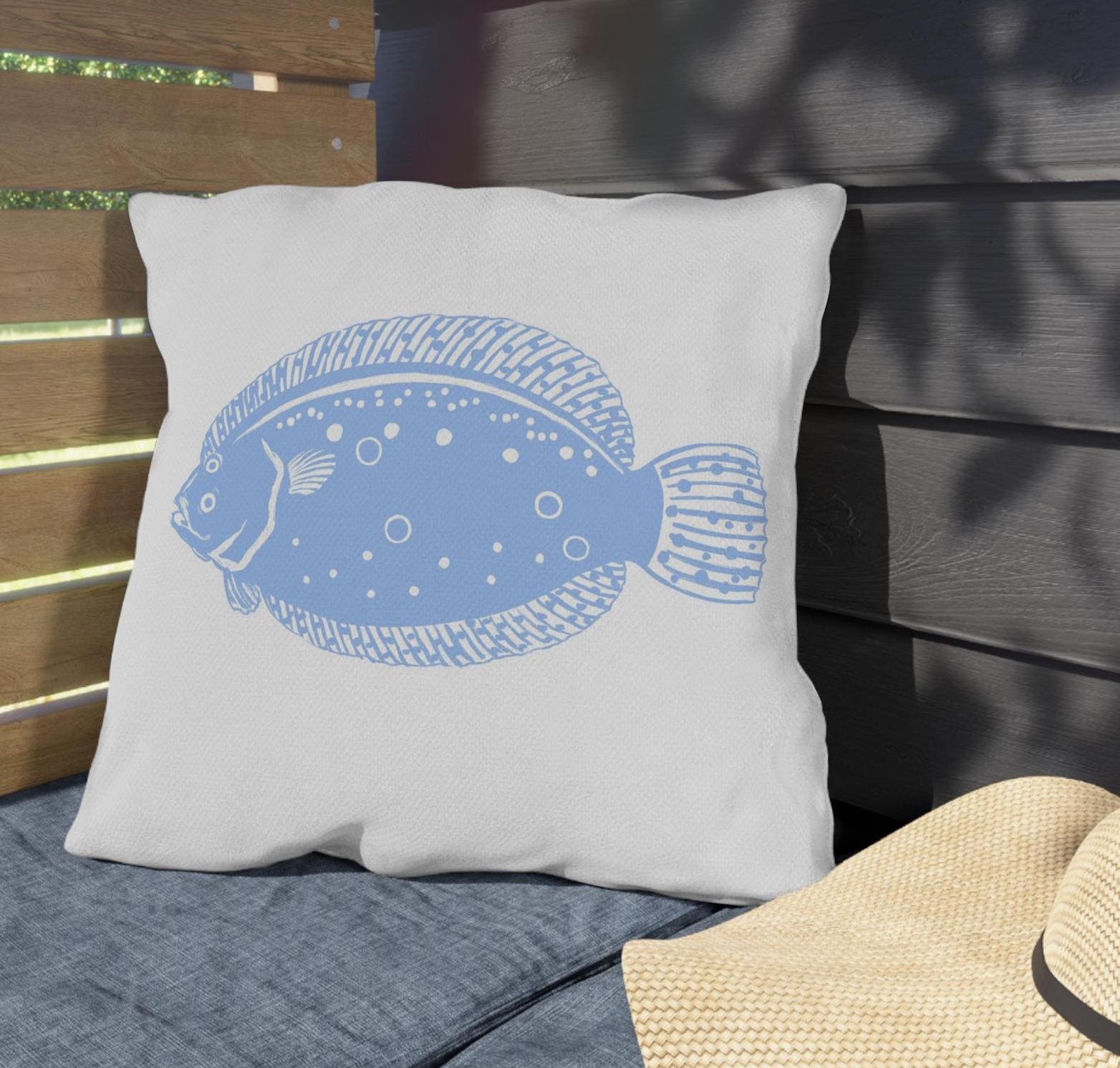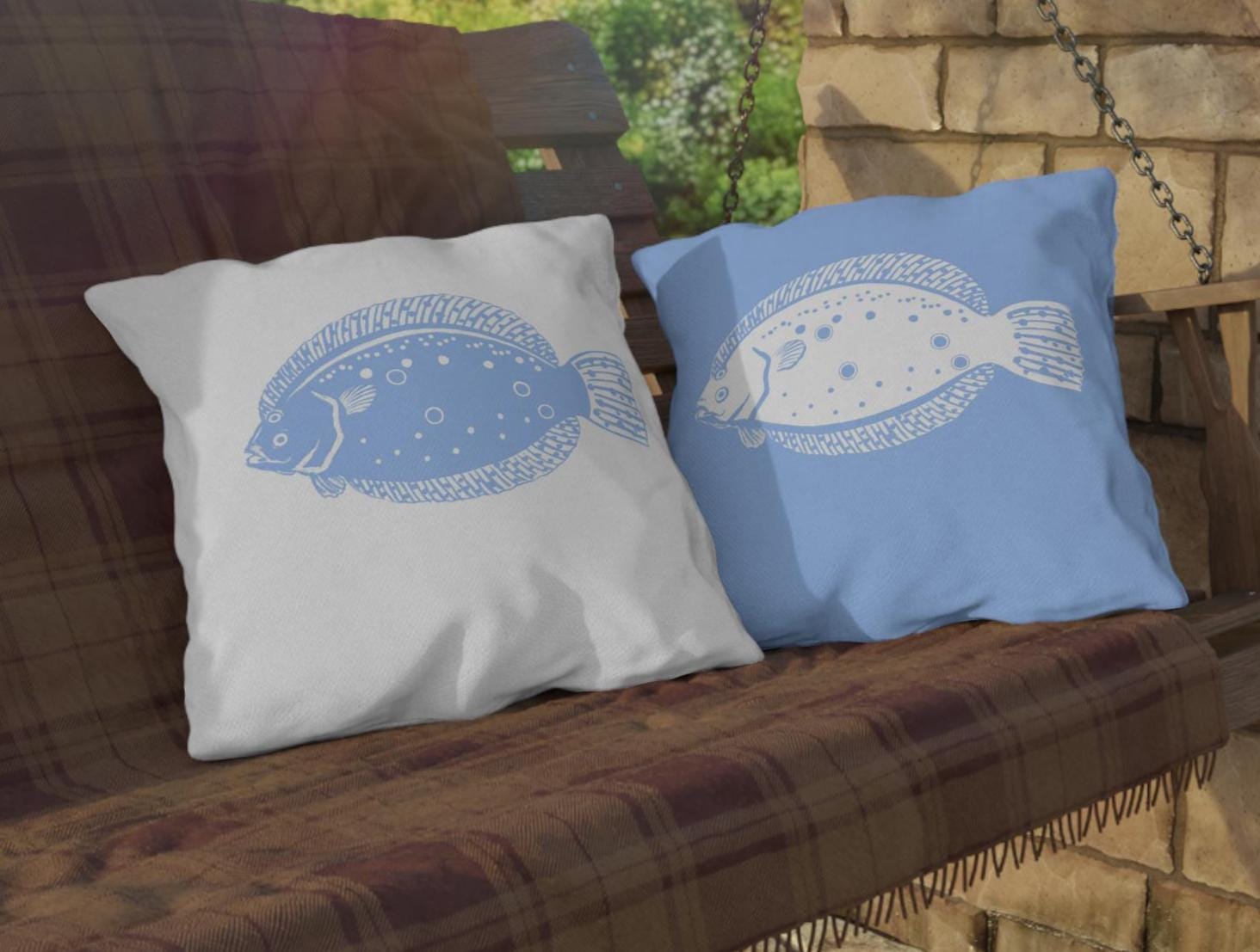 Classic but laid-back, this 18" by 18" pillow features a periwinkle blue flounder on a white background. The pillow is reversible with its back featuring a white flounder on a matching periwinkle background. Both sides will complement all of your Sea Foam Collection pieces and create a multi-layered look. The insert is included. The pillows are UV-resistant so you can count on the printed colors to stay vibrant for a long time to come. Additionally, their water and mildew-resistant nature make them the perfect candidates for carefree decorating. These pillows are made to order and shipped from within the USA. FREE regular shipping within the USA included.